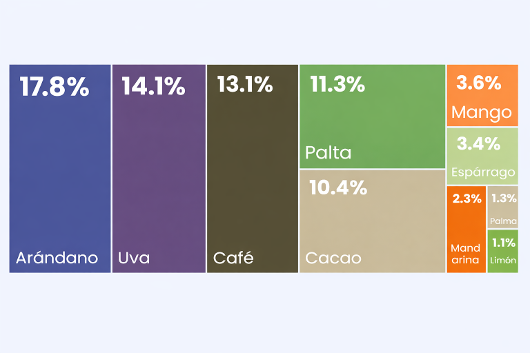 Los principales productos agrícolas peruanos importados en Francia fueron la palta, el mango y el café, que en conjunto tuvieron una participación de 62%. Una canasta tan poco diversificada limita el crecimiento en participación del Perú como proveedor del país galo, por lo que es importante abrir oportunidades para otras frutas. Los problemas climáticos que afectan a los principales competidores del Perú en los tres productos que lideran la canasta es lo que ha permitido al país seguir ganando participación, pero no es sostenible.