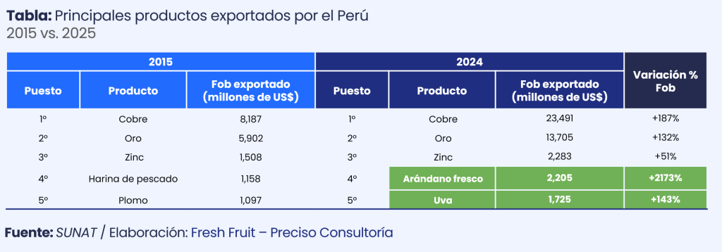 A pesar de este efecto precio que limita el crecimiento de las agroexportaciones del 2025, una nueva generación de empresas peruanas, entre grandes, medianas, micro y pequeñas, comienza a ganar terreno, permitiendo que en la lista del top 10 de productos exportados del Perú, usualmente, vinculada a bienes del sector minero y de pesca, ya sean dos o tres productos del sector agroexportador, siendo el arándano y las paltas los principales.