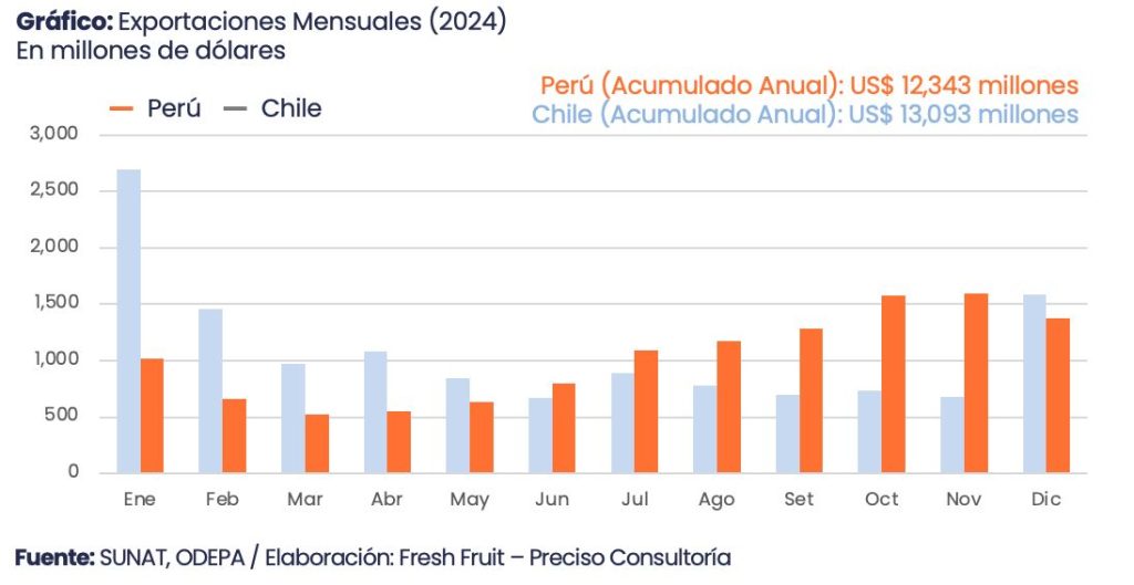 Para ambos países, el mensaje que deja la serie mensual es similar: el éxito de la última década se construyó sobre una combinación de clima, inversión y apertura comercial. La próxima se jugará en logística, gestión de riesgos y capacidad de coordinar una canasta cada vez más compleja con compradores que piden algo más que fruta de buena calidad al mejor precio.